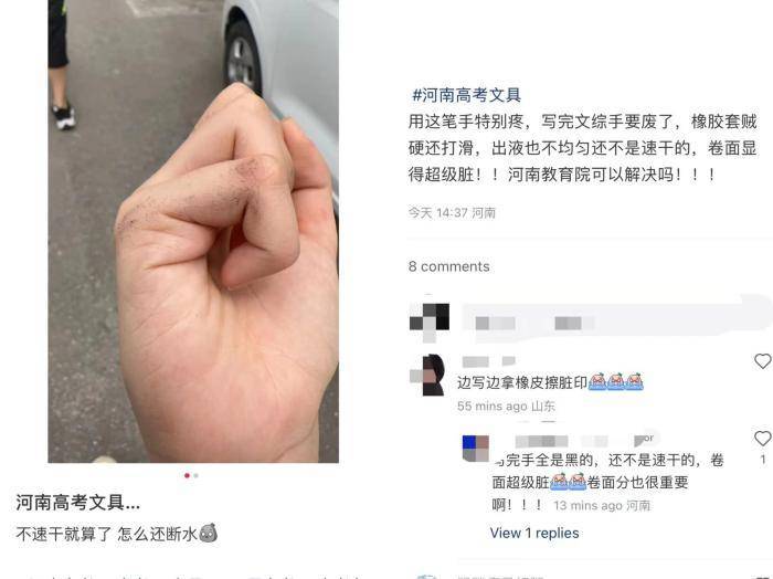 今年河南高考期間,不少河南考生表示統(tǒng)一配備的文具難用。爭議較為激烈的集中在鄭州,考生反映考場發(fā)放的“愛好”牌中性筆。存在筆漏墨、斷水等問題。有考生向監(jiān)考老師反映,更換用筆后仍然不行。