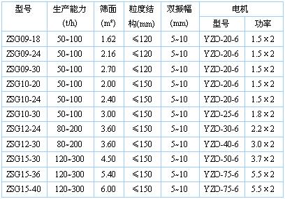 礦用重型振動(dòng)篩技術(shù)參數(shù):