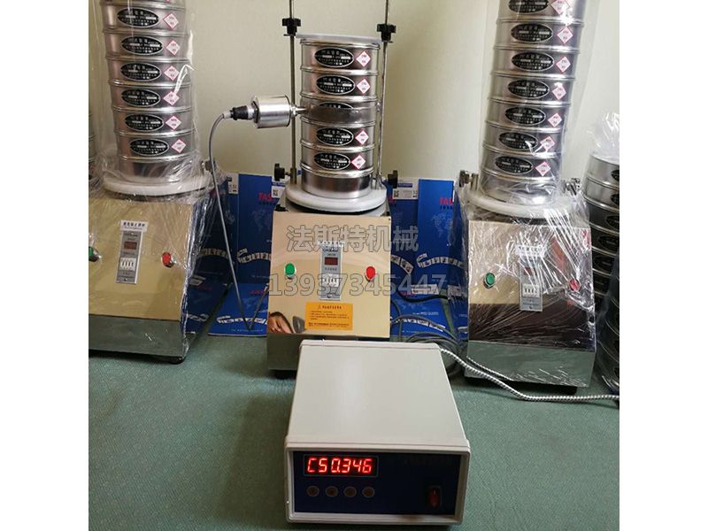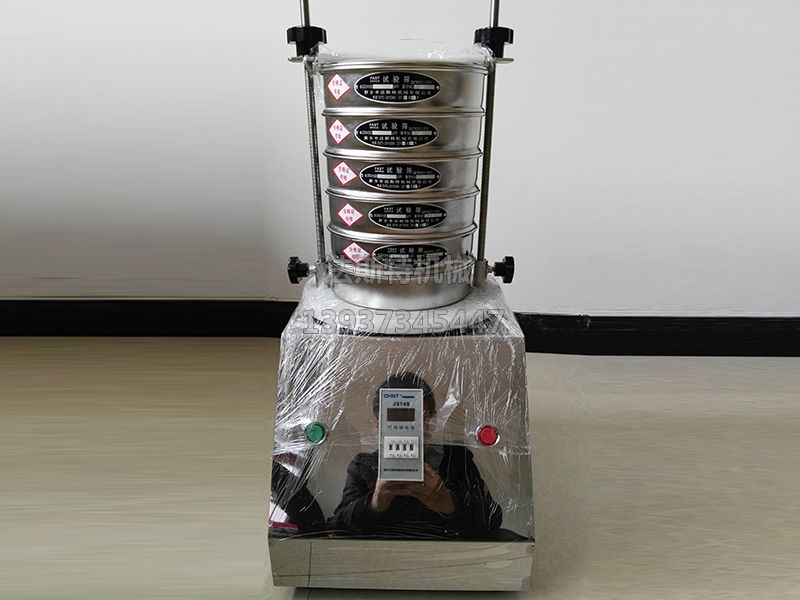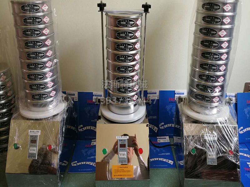 試驗(yàn)振動(dòng)篩通過振動(dòng)電機(jī)帶動(dòng)上部振動(dòng)盤振動(dòng),再通過振動(dòng)盤傳導(dǎo)至按放在振動(dòng)盤上部的國(guó)標(biāo)試驗(yàn)篩框,然后,把小于篩框孔徑的物料篩分至下層篩框,如此層層篩選,使每層試驗(yàn)篩內(nèi)留下相同粒度的物料,達(dá)到不同粒度的分離分選,并確定此物料的粒度組成。