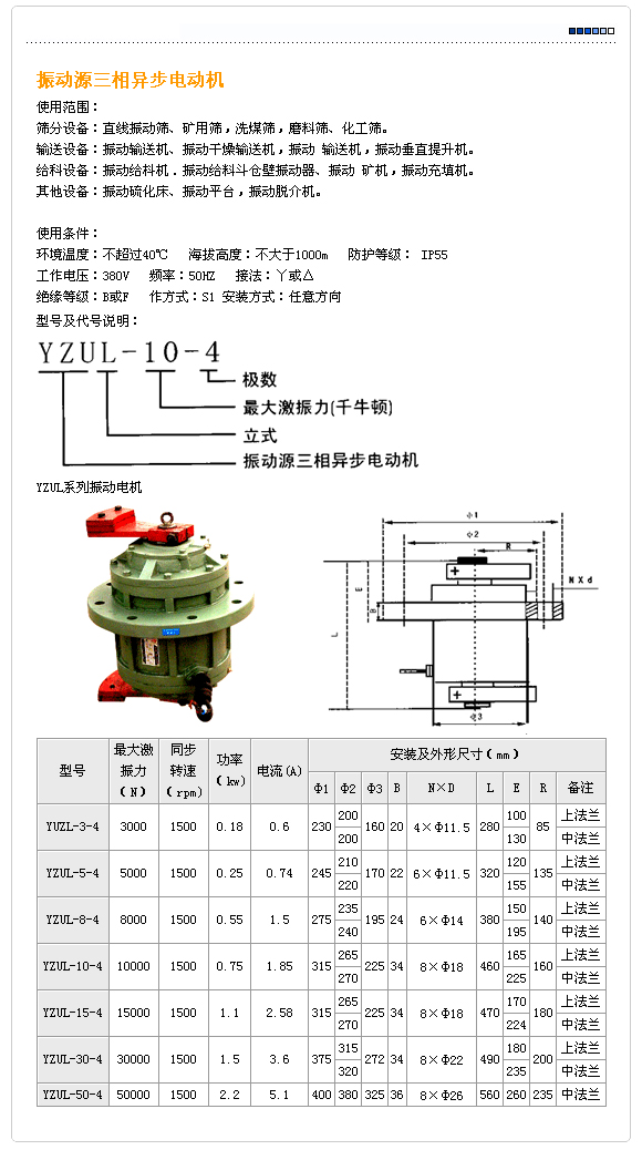 立式振動(dòng)電機(jī)/震動(dòng)電機(jī)使用條件: